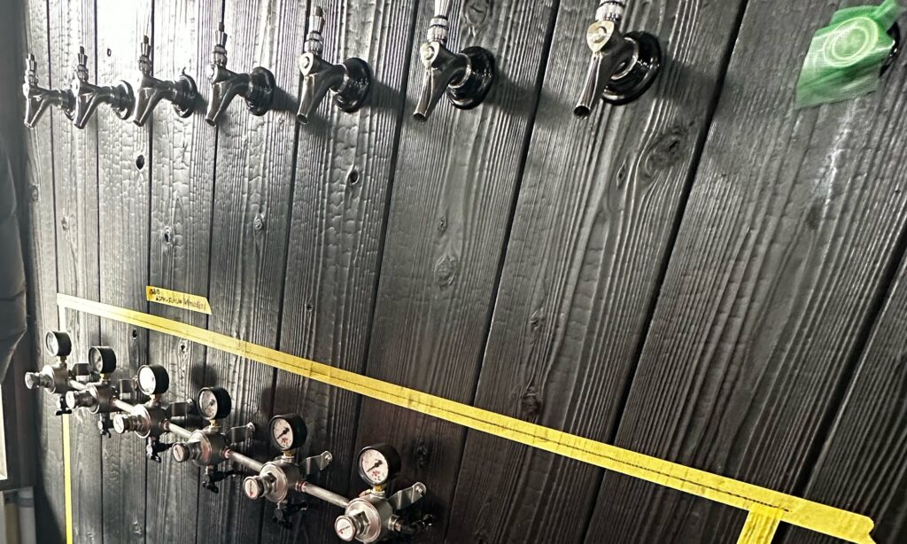 今回、お客様とデザイナーさんの拘りもあり、タップ表面に焼き杉板を使用することに。