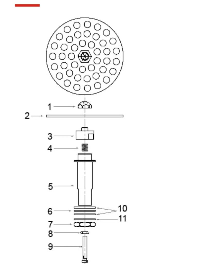 部品表でいう3番に当たる円盤と本体を繋ぎ止めるネジの上部が破損してました。こんな所が割れるの!っていう所からボキッと折れておりました。