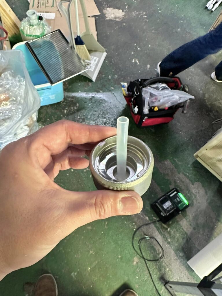 無いなら作れば良いのです。ビール用のアタッチメントをカットして周りを削って金属部品に叩き込んではい出来上がり!
