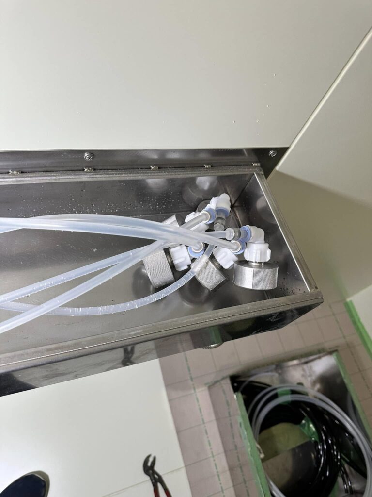 多ライン同時洗浄となると、トリプルブランチエイなどを使って1個のカプラーから分岐していくのが既存のやり方でしたが、それだと毎回カプラーからホースを抜き差ししないといけなくて、そうなると床にビールもこぼれるしなー。って懸念がありました。